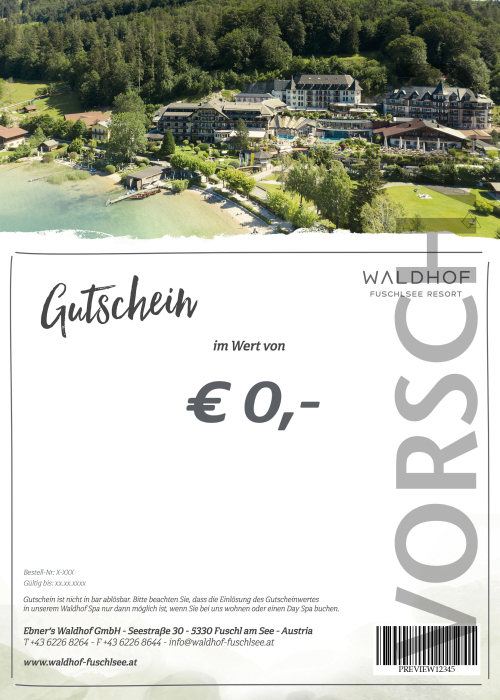 Egal was Sie im Waldhof vorhaben, mit einem Wertgutschein hat der Beschenkte die Wahl, wofür und wann der Gutschein im Waldhof Fuschlsee Resort umgewandelt werden soll.